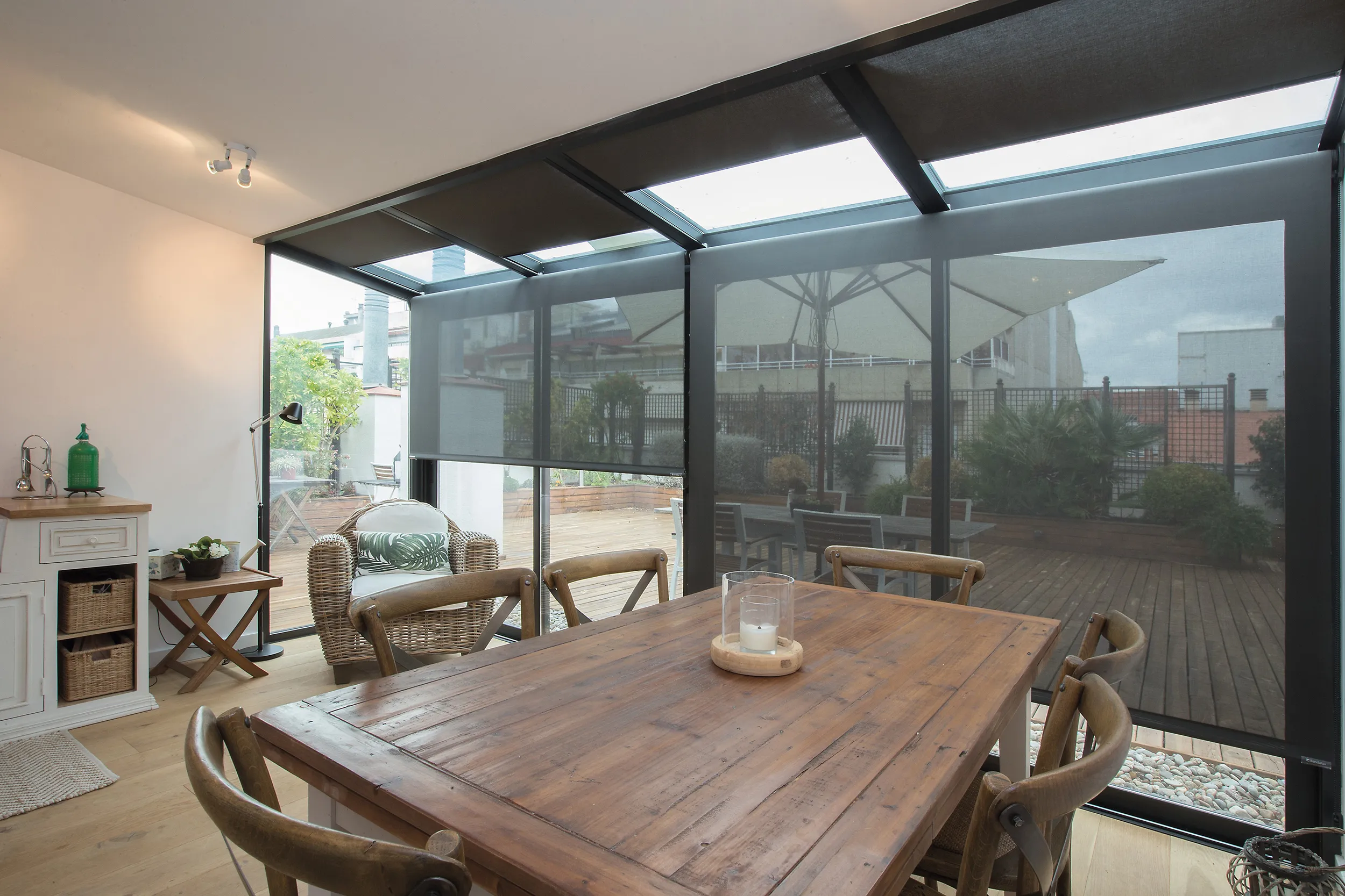 Bandalux offers solutions for skylight windows, regardless of the model or inclination. They are installed without screws or holes, directly on the frame, creating an intimate and cozy atmosphere.