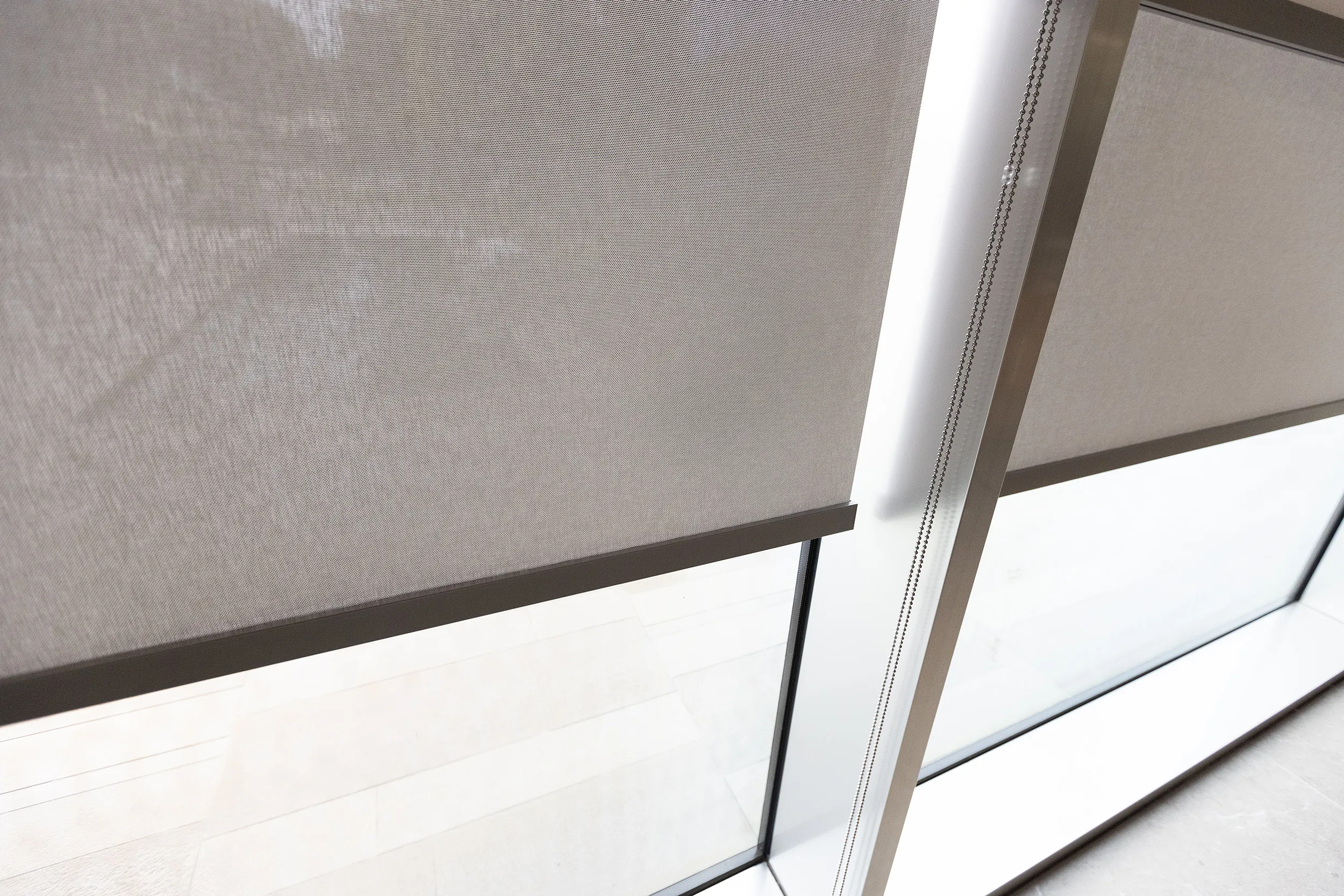 For this project, the architects selected the Bandalux Premium Plus Duo system, which combines opaque and screen fabrics. This choice is ideal for an office environment, providing flexibility: total privacy and light blocking with the opaque fabric, or natural light and thermal protection with the Screen fabric, while maintaining a certain level of openness.