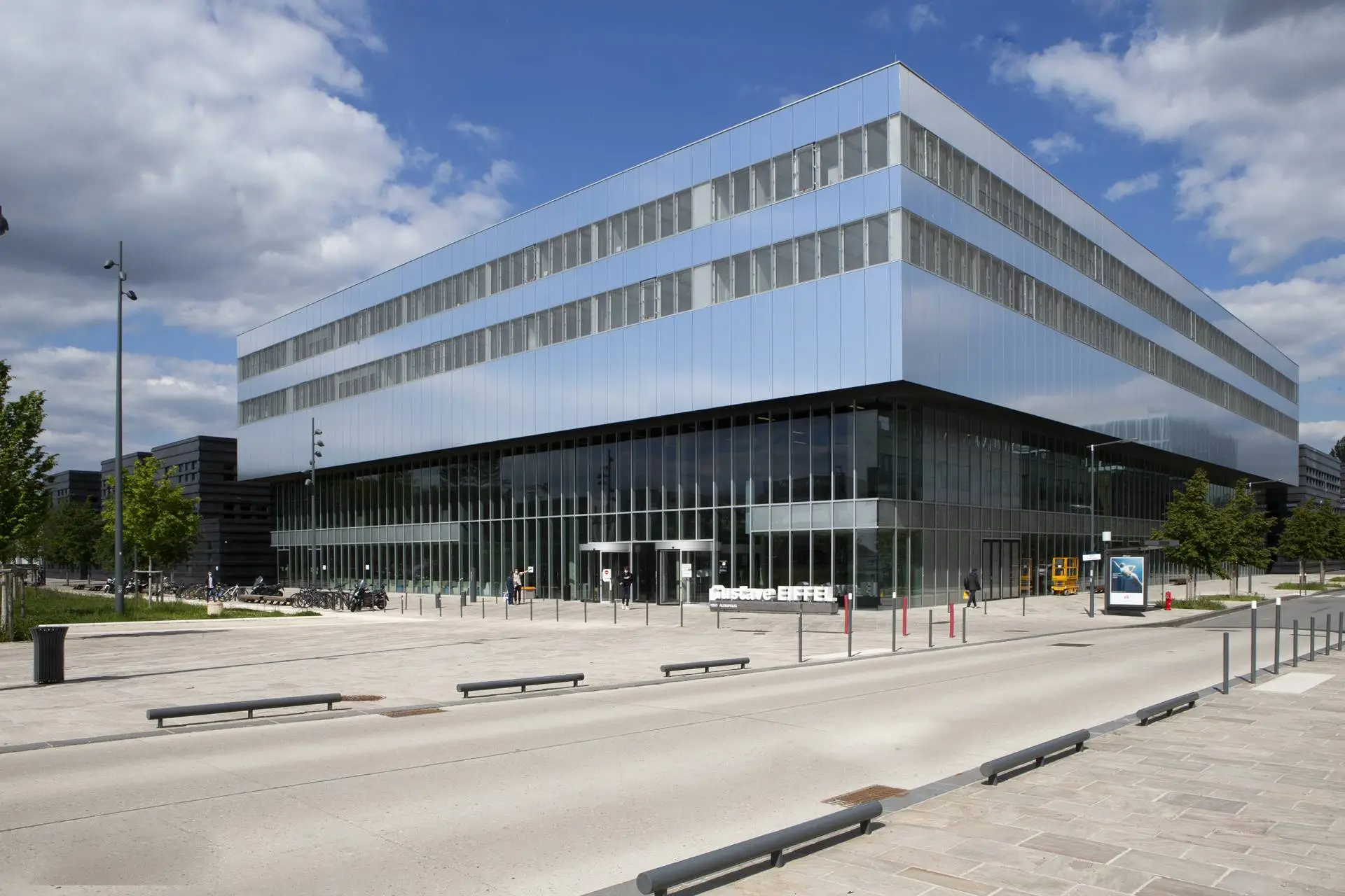 Bandalux B-Box roller shades with High Performance fabric are installed in selected buildings. Their side guides provide complete blackout when needed, and the anthracite-colored box matches the window frames, fully integrating the solar protection system into the architecture.