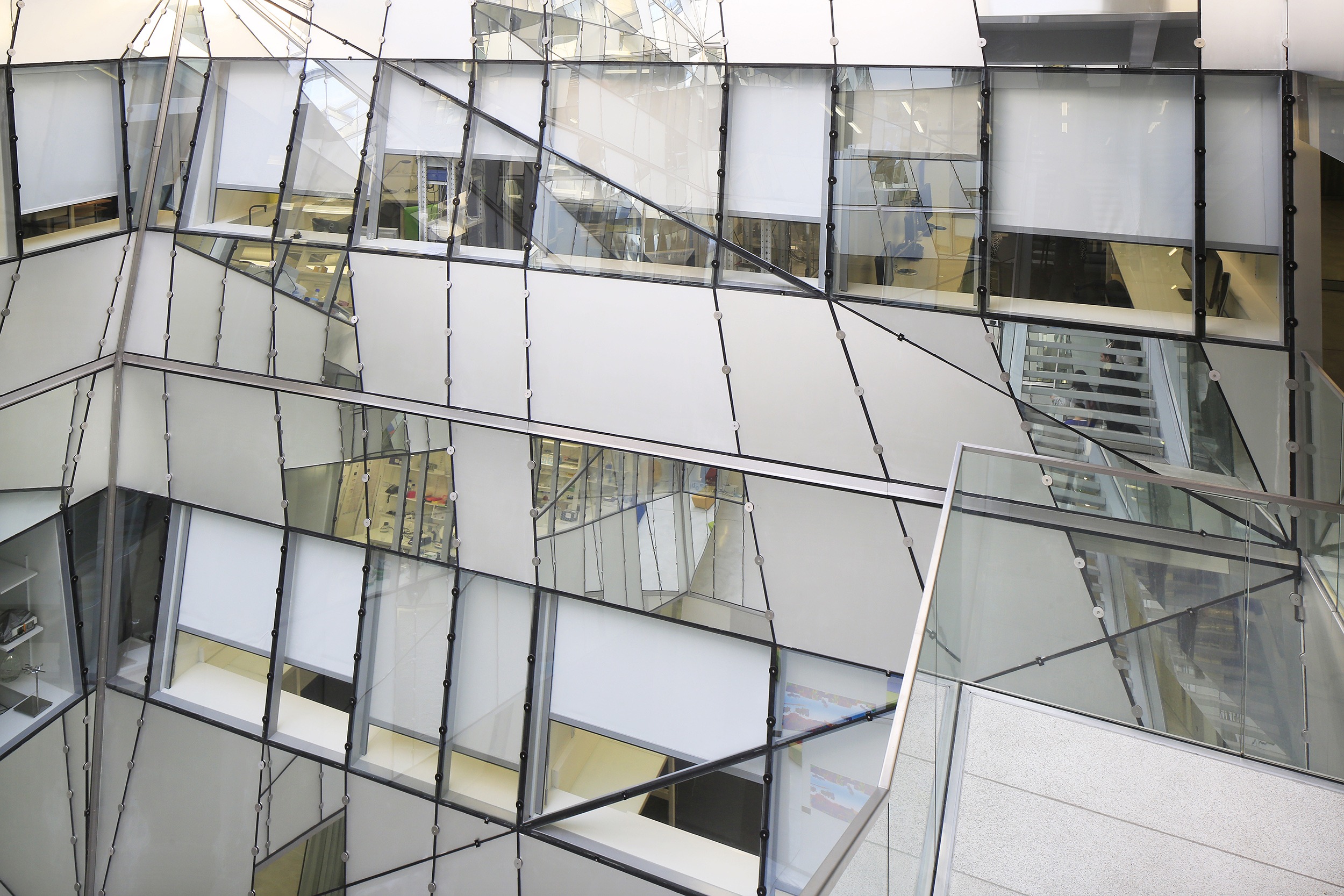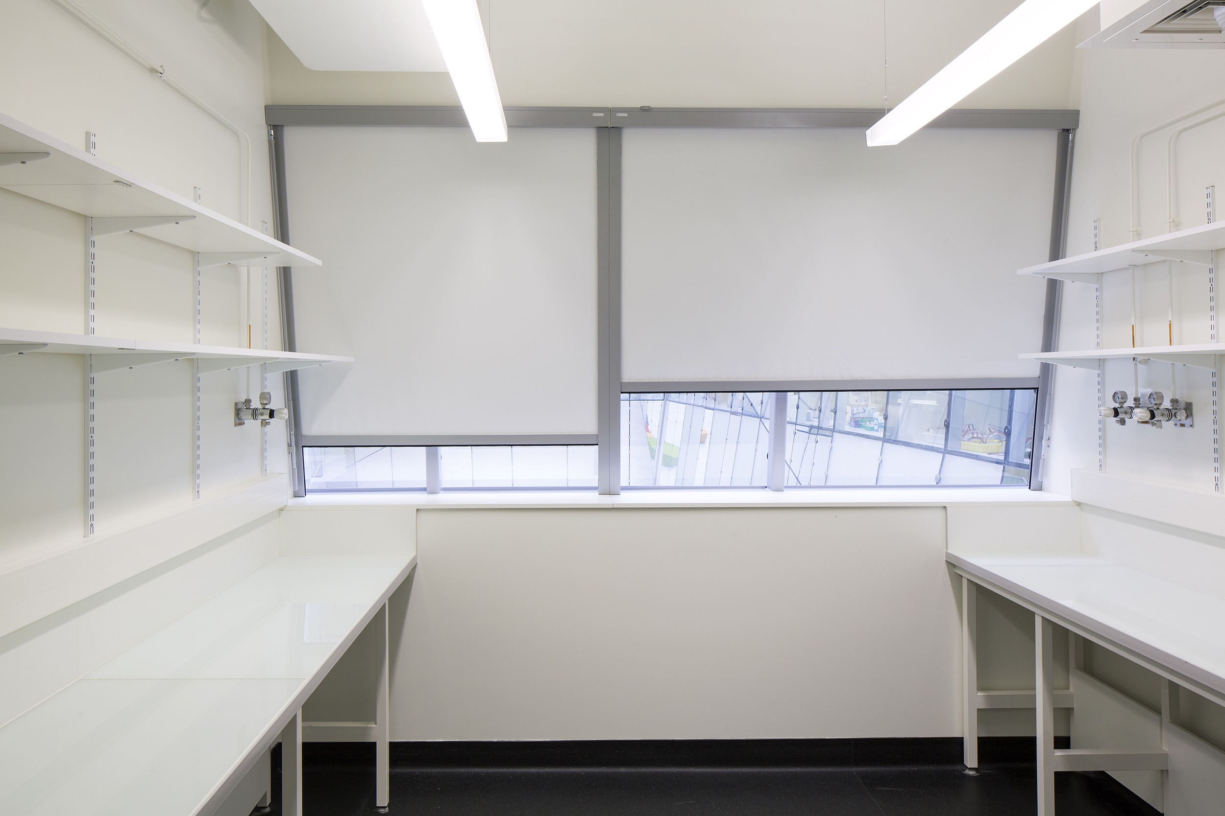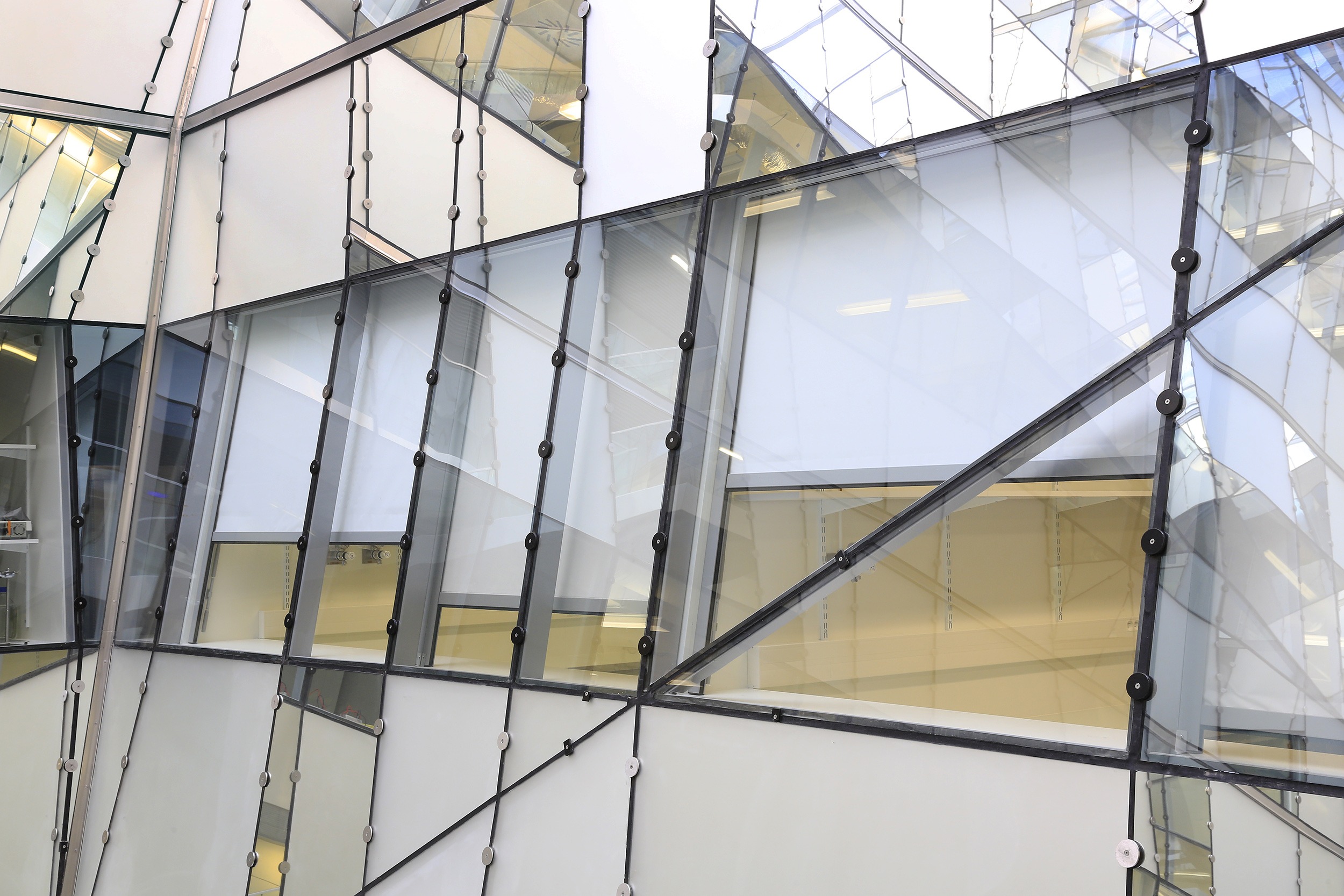 The choice of blinds is crucial in this case, as they must meet the technical and functional requirements set by the research institutes, in accordance with sterile laboratory standards. The 95 interior blinds installed are 100 % opaque and made with Blackout fabric, making a significant difference. They have been installed in all laboratories facing the atrium. This is a technical PVC-free fabric that ensures optimal comfort and complete privacy.