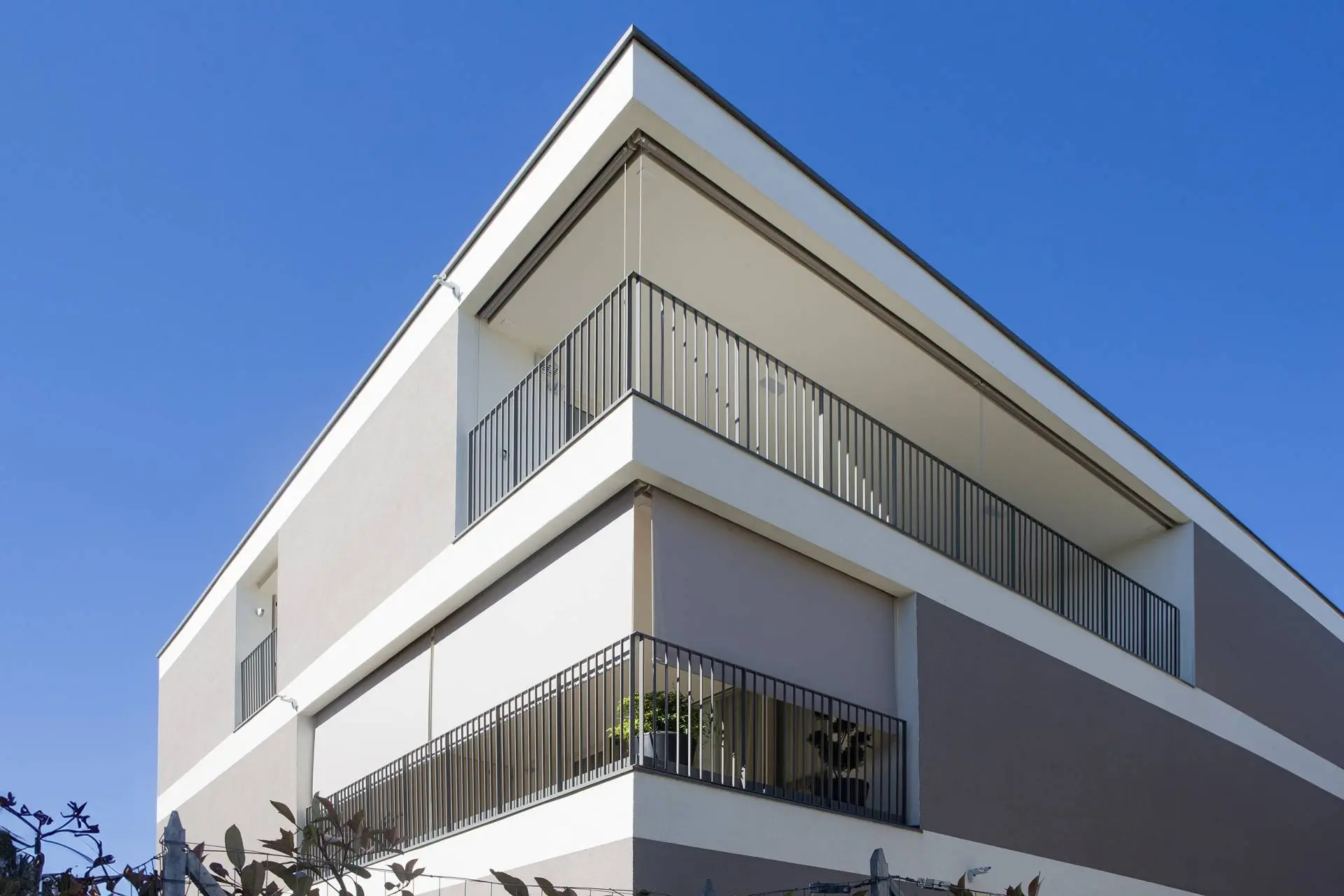 For the terraces, Bandalux provided an elegant solution with its Premium Plus roller shades. At the corners, two blinds are joined to ensure total privacy in the expansive terrace areas. The incorporation of cable guides ensures that the fabric stays in place even in windy conditions, offering both functional and aesthetic advantages.