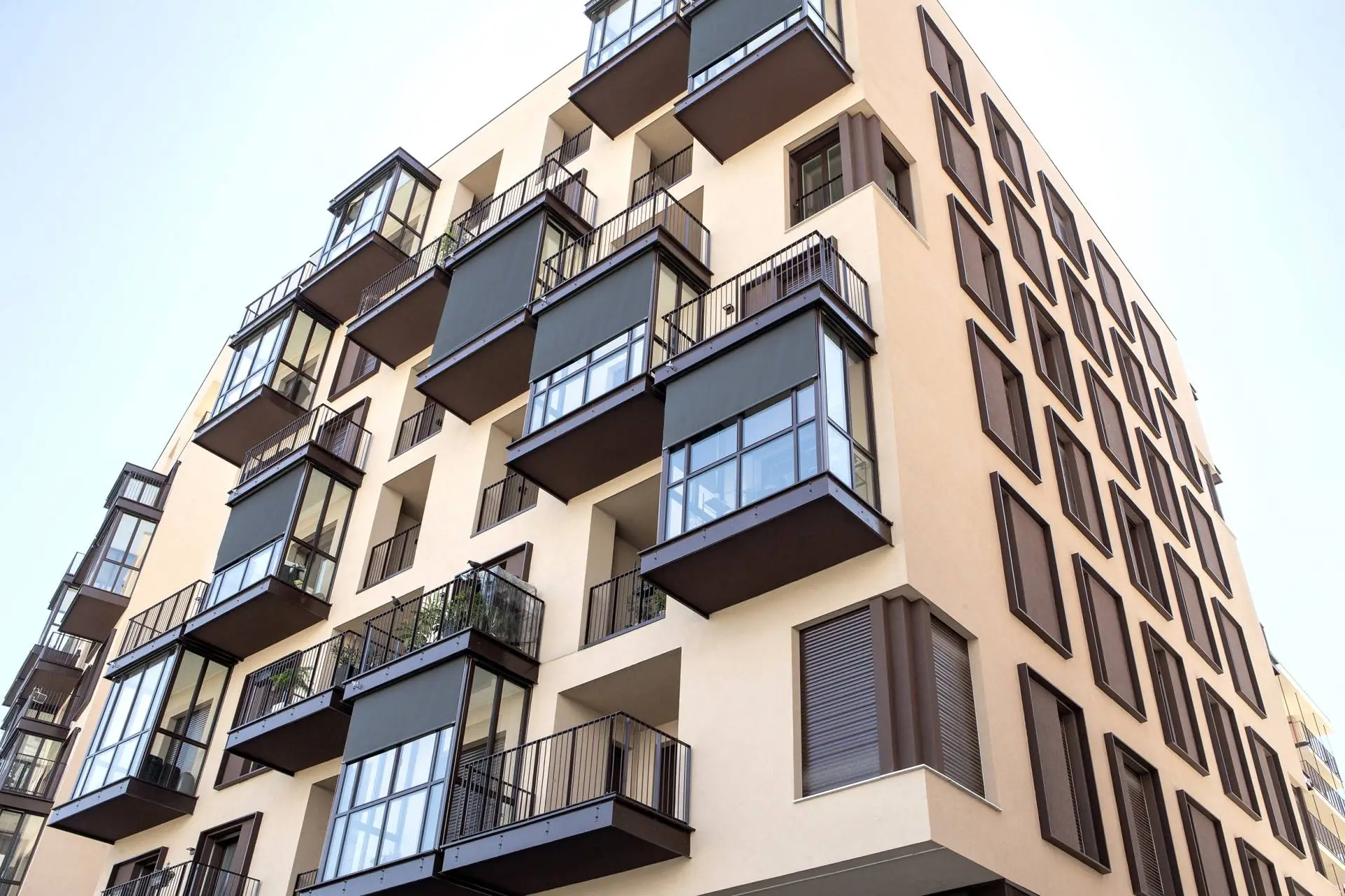 For this project, Bandalux supplied its guided Premium Plus roller shades, providing both solar protection and precise fabric tension across the three glazed planes of the loggia. The selected Screen fabric complements the façade, maintaining the building’s cohesive color palette while ensuring functionality.