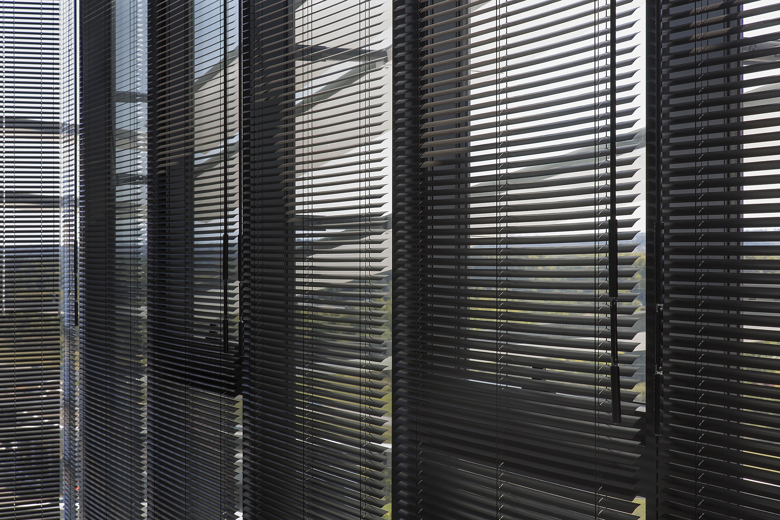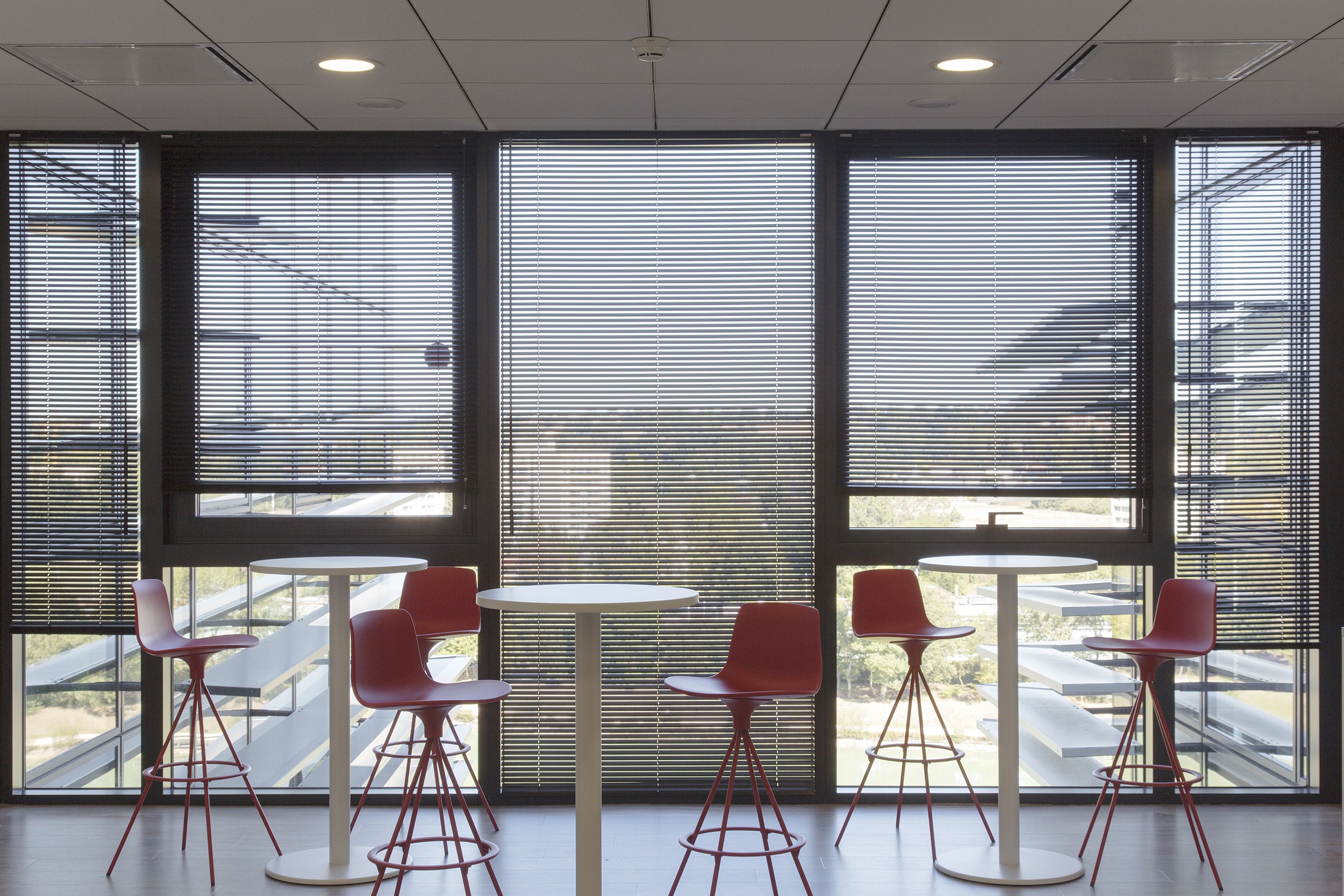 Special attention was given to employee comfort when selecting the interior blinds, which serve a dual purpose: respecting Thalès’ need for discretion and providing luminous comfort to complement the aluminum venetian slats on the building’s façade. Inside, over 938 Bandalux Signum aluminum venetian blinds cover the glazed surfaces, preserving privacy without sacrificing visibility, whether installed in meeting rooms, open offices, or private offices. This office building, with its aesthetic qualities, innovative equipment, design, and functionality, fully meets the criteria for thermal performance, environmental integration, and sustainability.