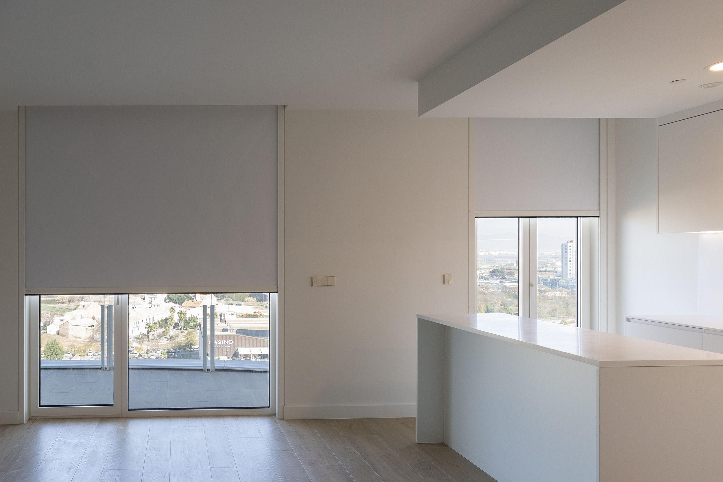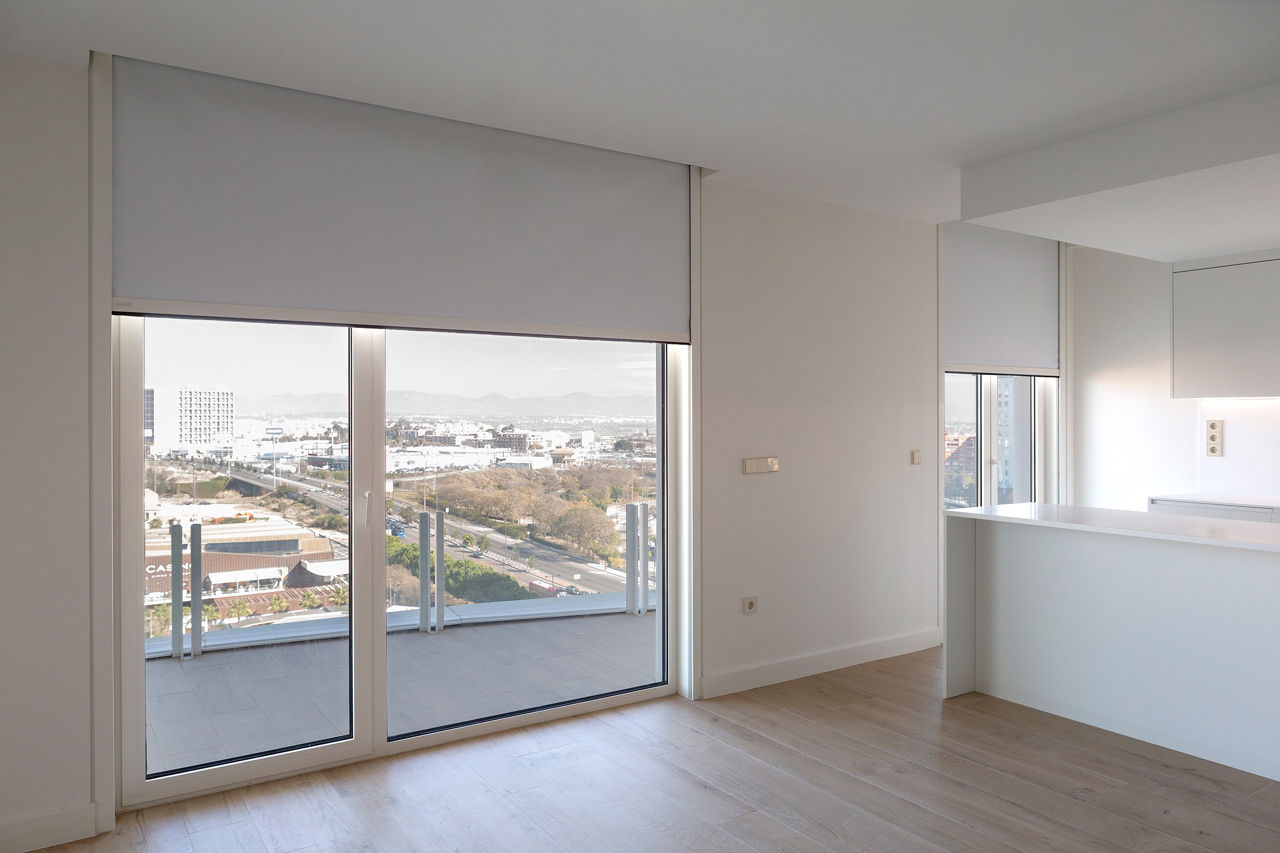 Given that it is a skyscraper, light management was a key aspect of Bofill’s design. The façade features large openings where our Zi-Box roller shades replace traditional shutters. These blinds are equipped with blackout fabric, ensuring visual, acoustic, and thermal comfort. Thanks to the Easy Zip guides, the Zi-Box system guarantees total darkness and maximum privacy.