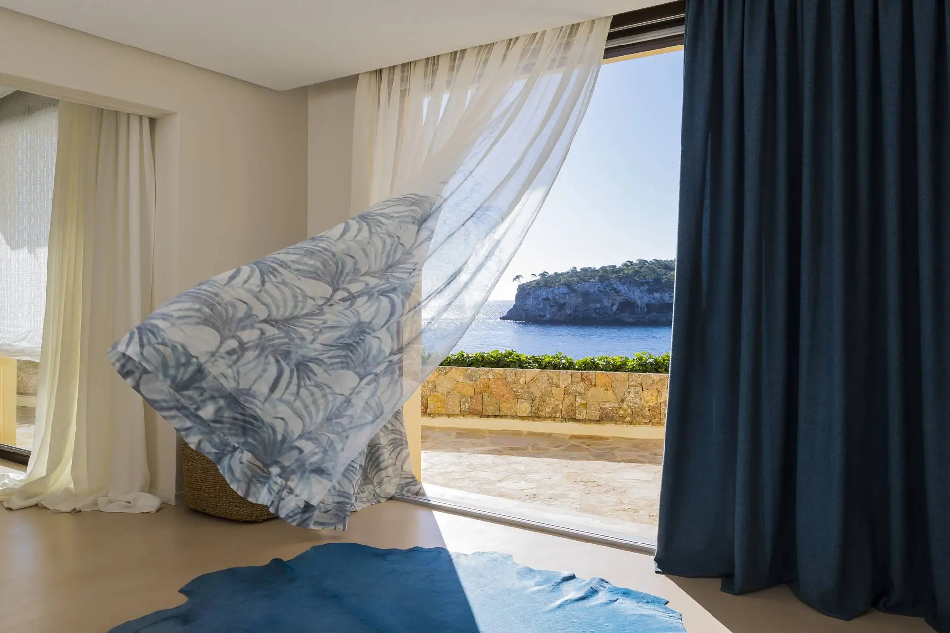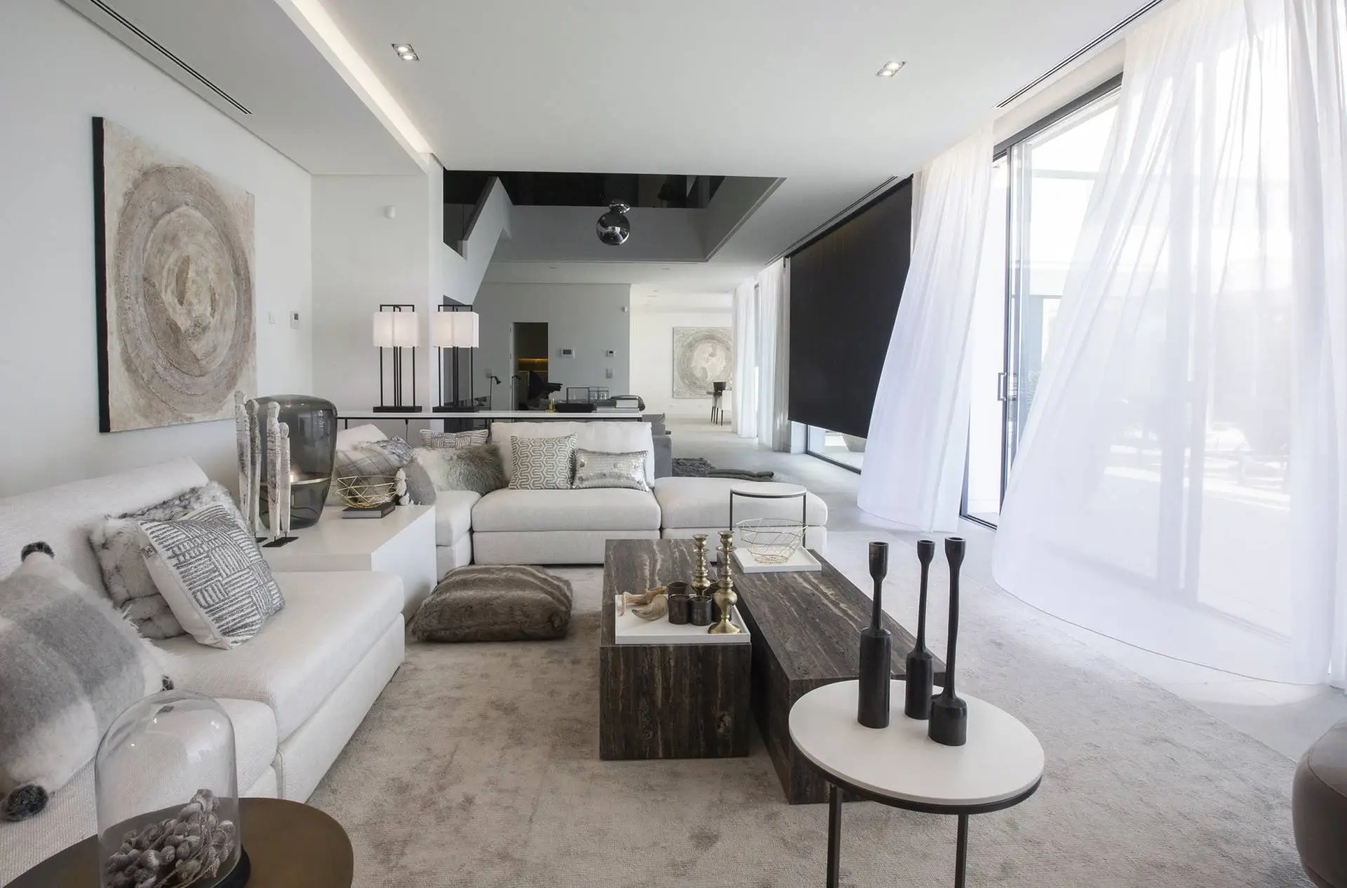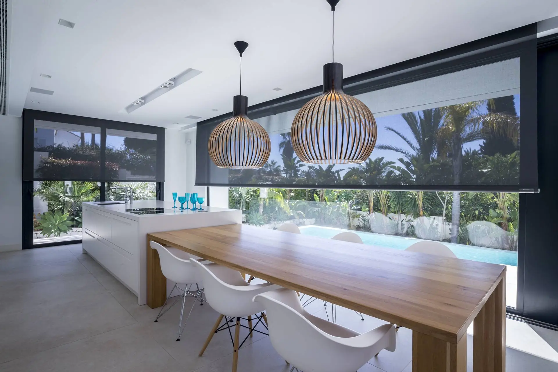 Three stunning villas featuring Bandalux blinds and curtains in both indoor and outdoor spaces.