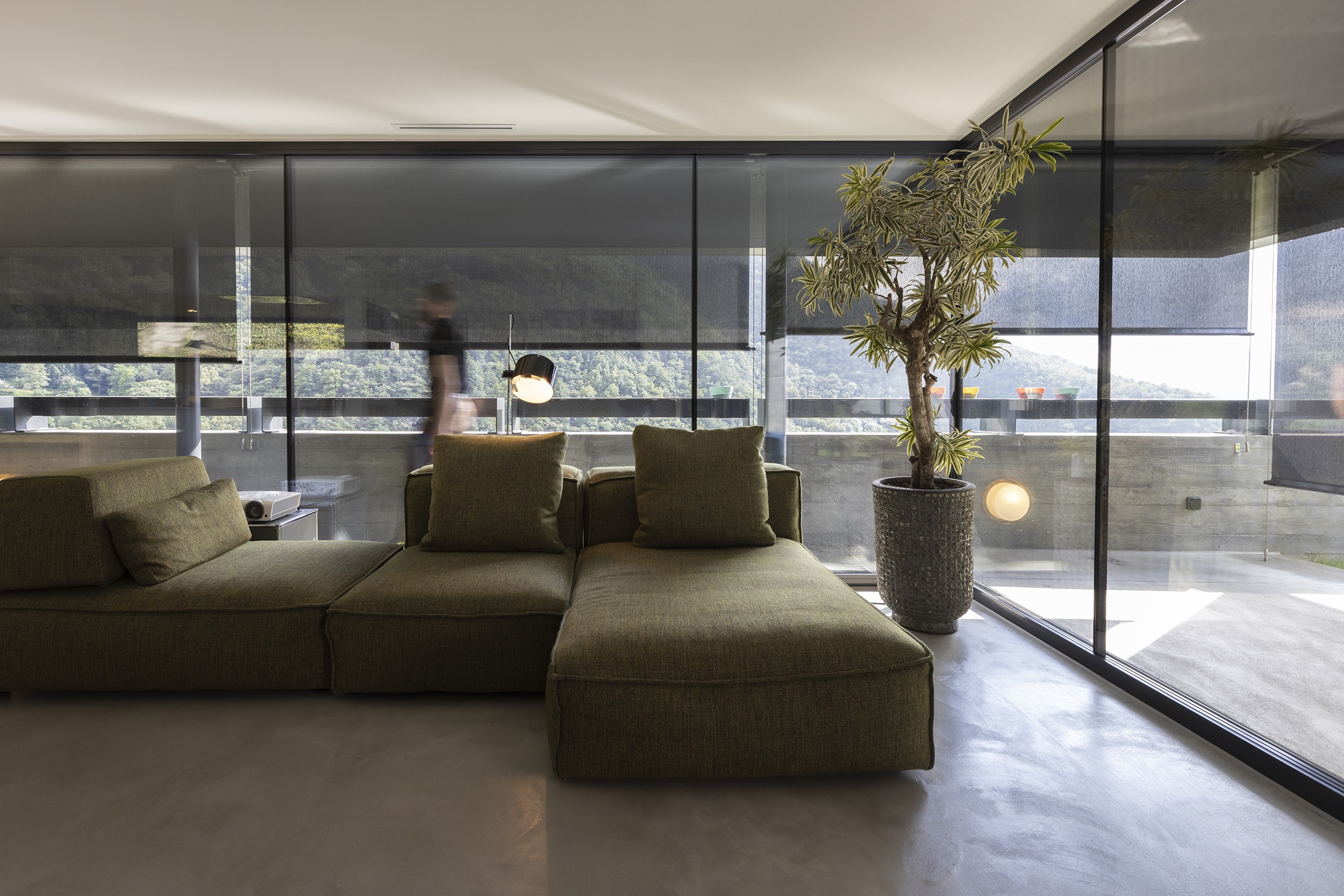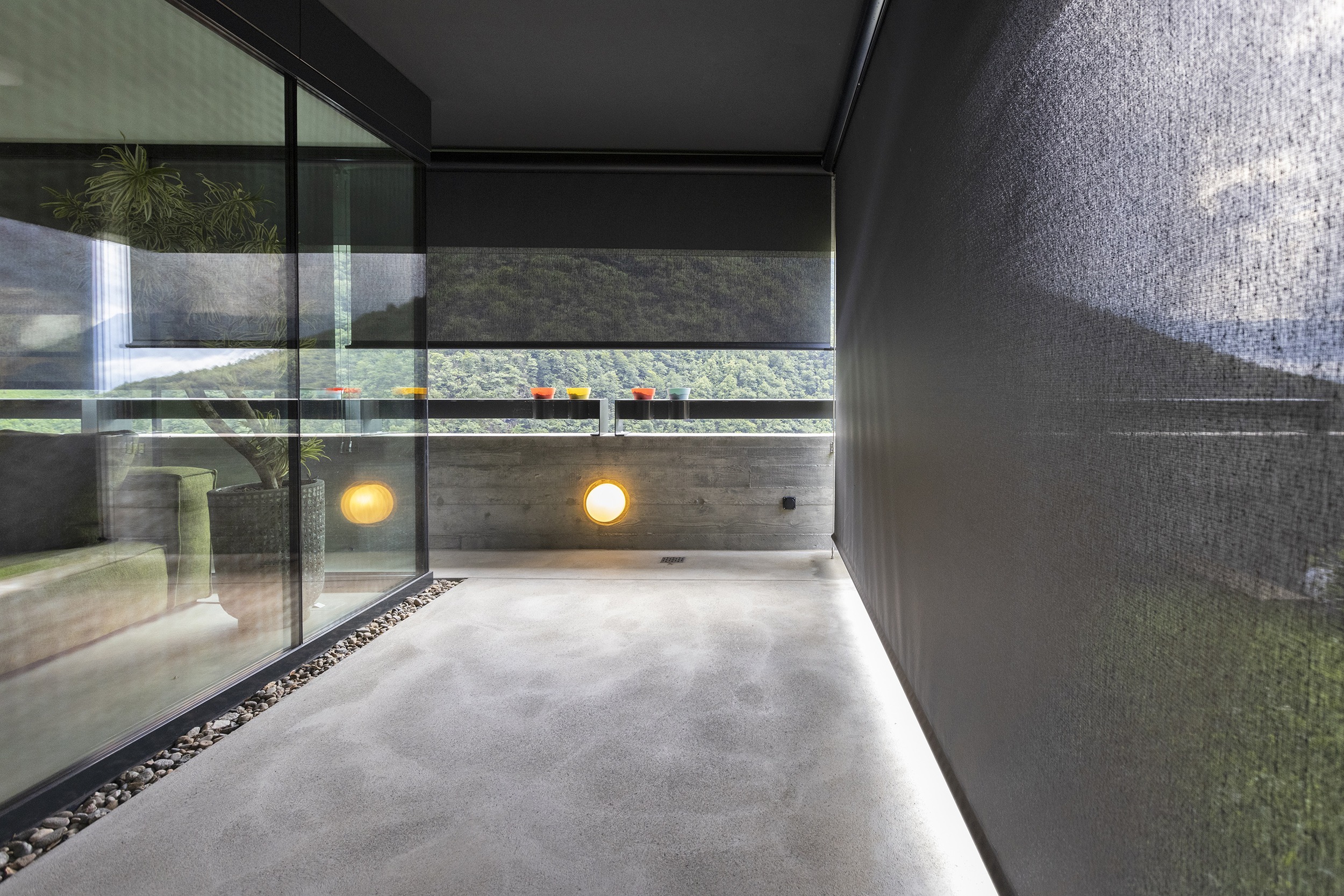 The O-Box shades help create extra-outdoor spaces around the house, forming a kind of in-between area when the blinds are closed.