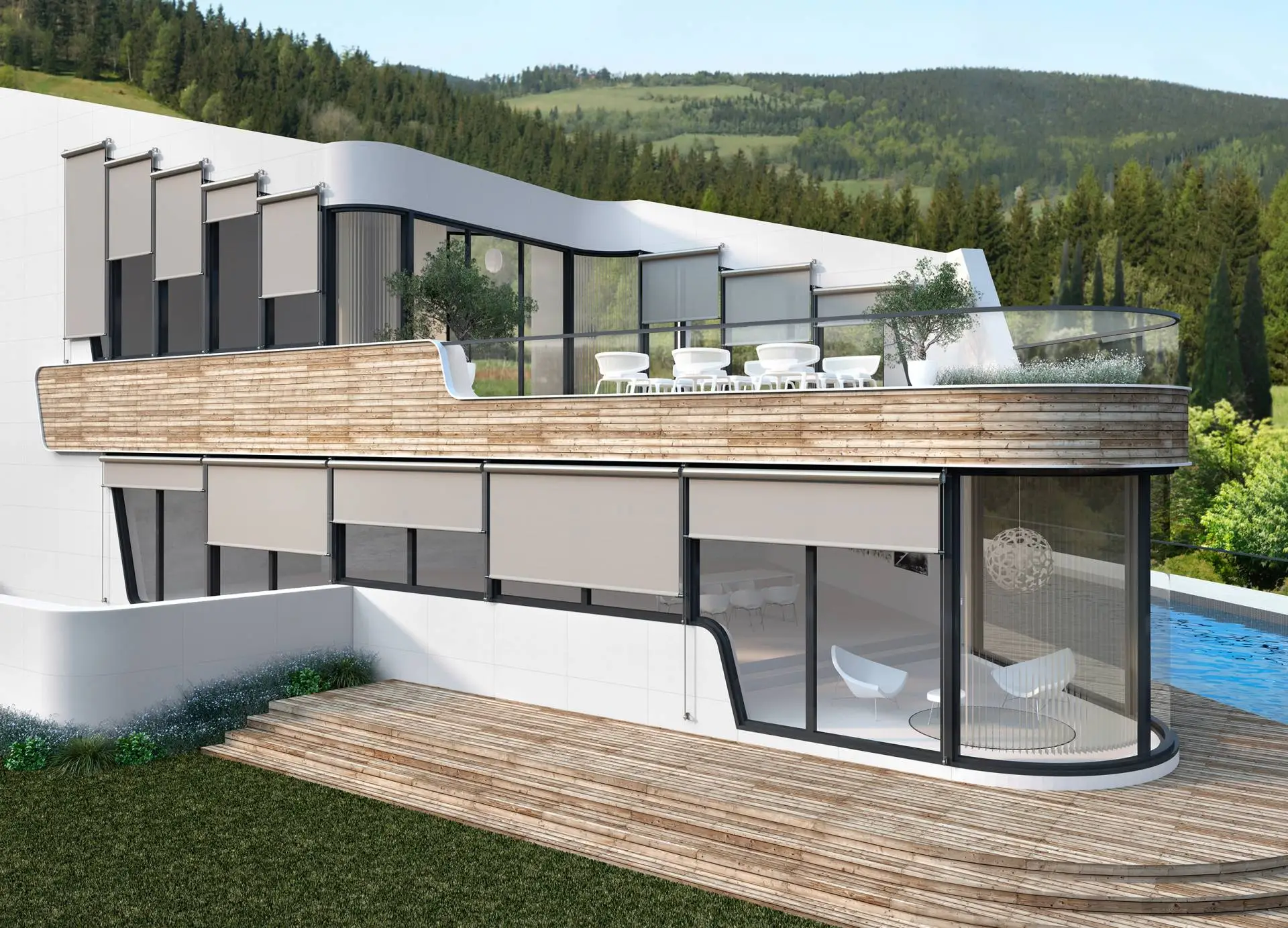 Its robust and sophisticated design ensures both lasting aesthetic integration in contemporary façades and maximum wind resistance, thanks to its guided system options.