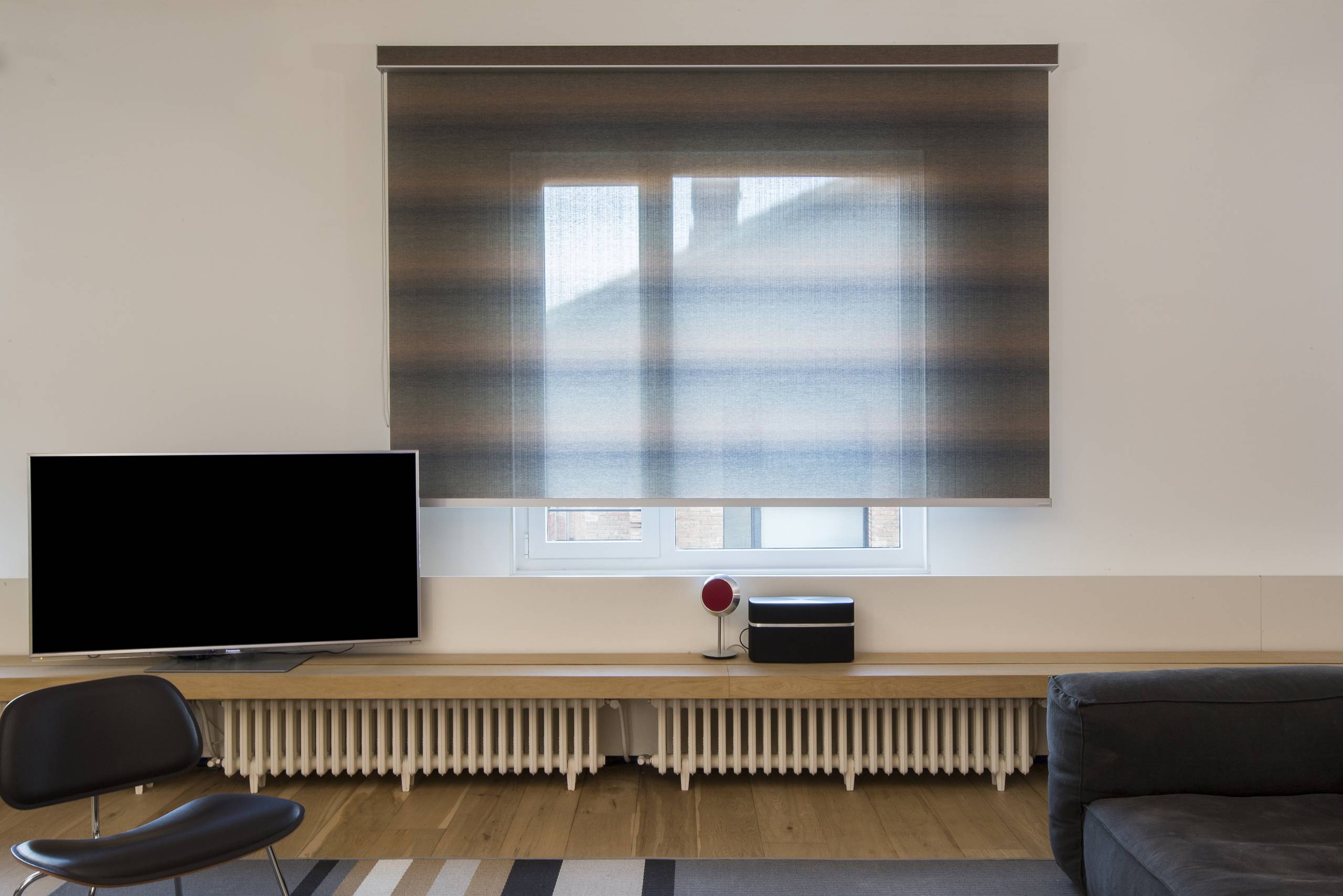 The Q-Style is a roller shade with a decorative cassette featuring clean lines, designed to integrate elegantly into any interior space.