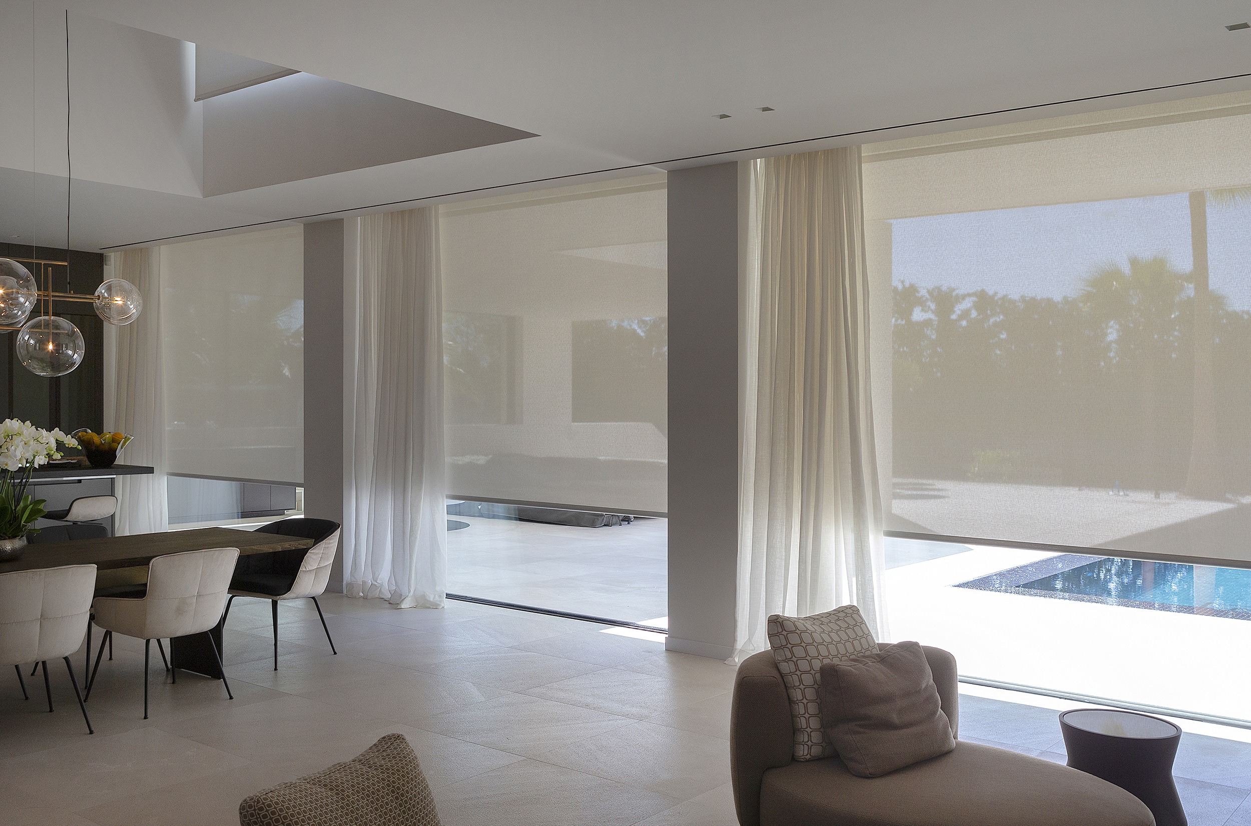 El arquitecto David Domínguez Rueda seleccionó el sistema BSO de cortinas enrollables y cortinas tradicionales para un óptimo control solar.