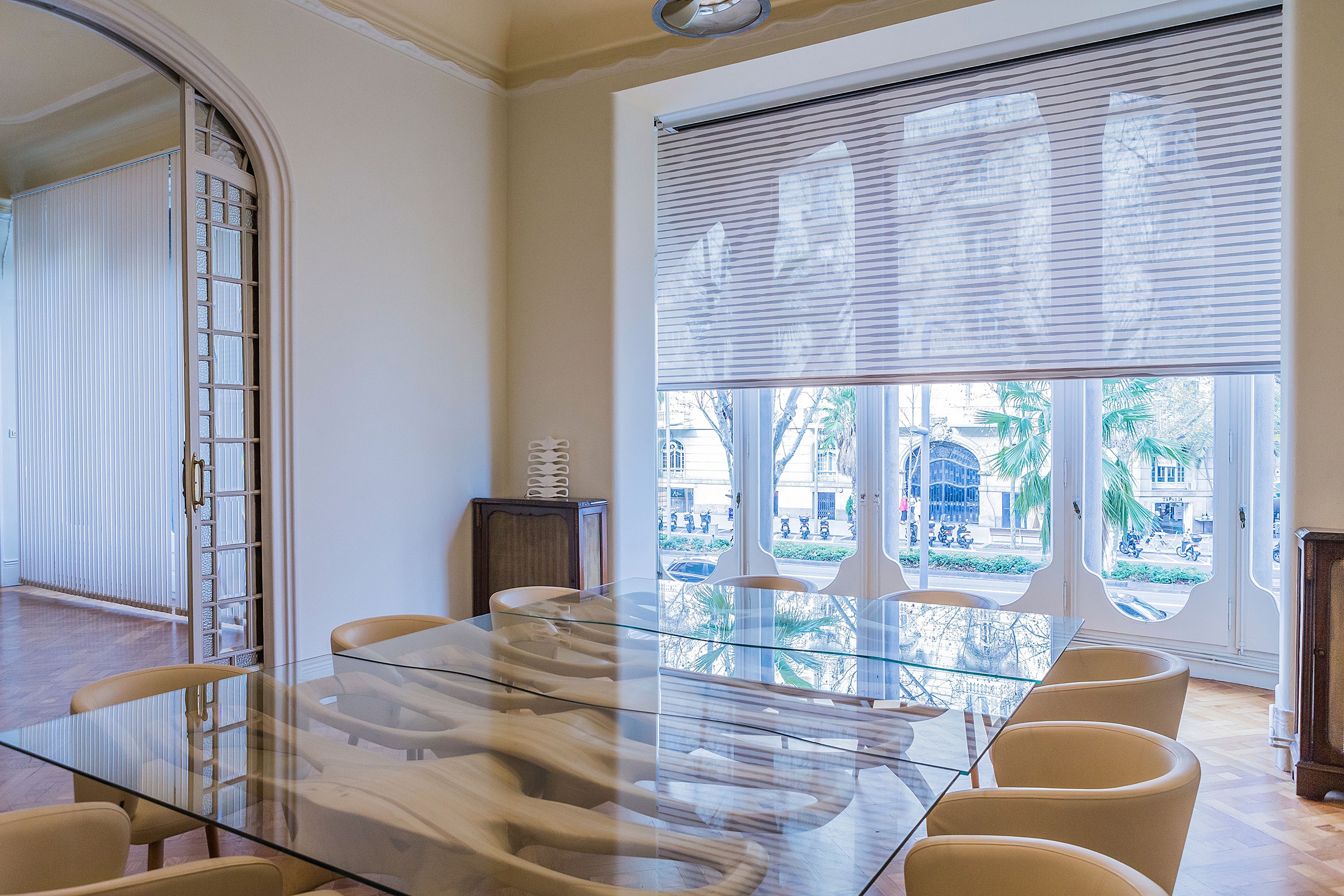 Inspired by this modernist style, Carmelo Zappulla, CEO of External Reference, selected our products for their ability to shape light, adapt to any space, and the wide variety of textures in our catalog. Roller shades Arion, vertical blinds, and pleated shades were installed with different operating systems and fabrics, blending with the decoration of any space and creating distinct environments.