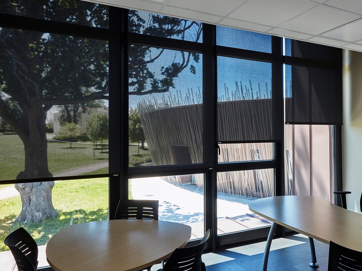 Bandalux’s diverse range of blinds and shades fit naturally into the project: solar protection screens provide optimal management of sunlight, contributing to improved energy efficiency and occupant comfort; and roller shades with 100% blackout fabrics allow complete darkness in the council room thanks to the installation of large-sized blinds.
