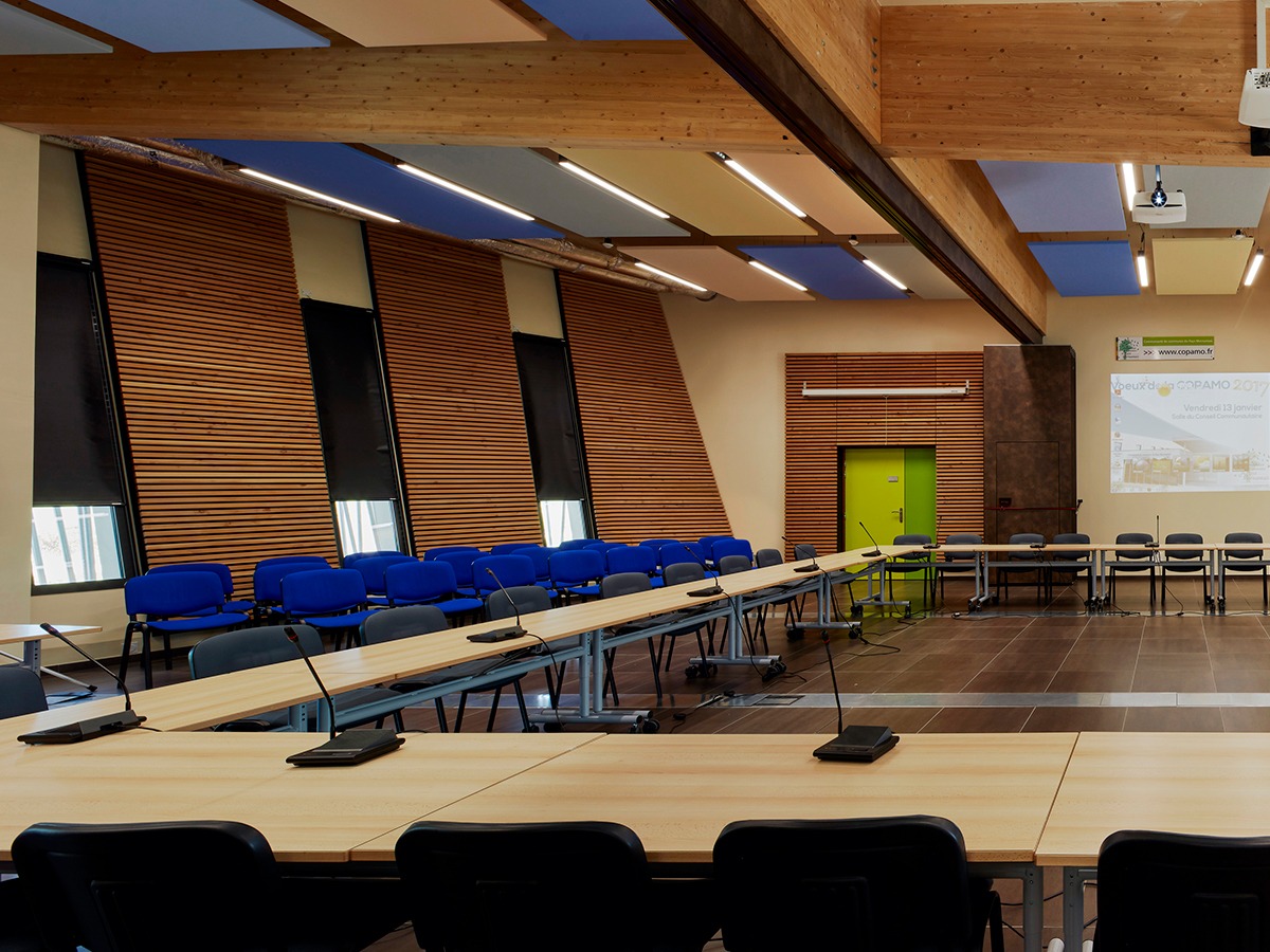 As an essential element of this service center, the project pursued a dual objective: creating a set of offices and designing a second space dedicated to voting by elected representatives.