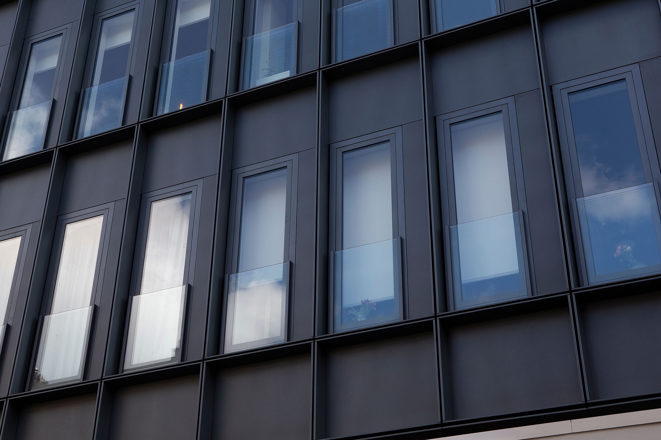 For energy efficiency, the façade was carefully designed using prefabricated modules and a gradual change in scale, adding great dynamism. The use of dark colors allows the building to stand out in its environment.