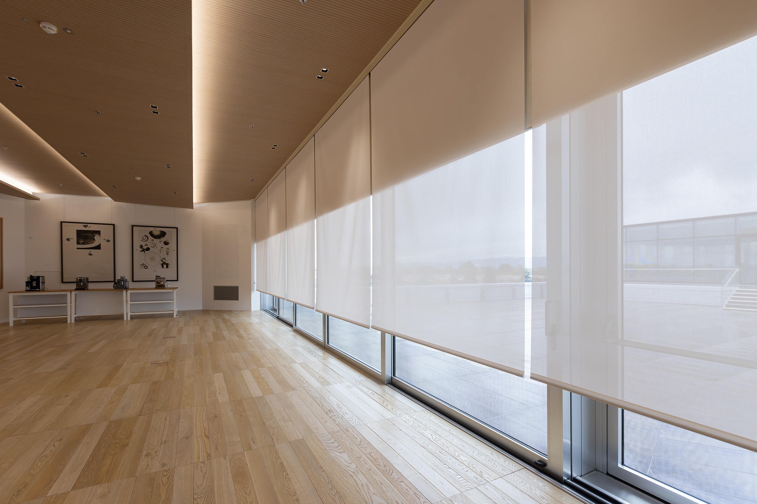 For this project, the architects selected the Bandalux Premium Plus Duo system, which combines opaque and screen fabrics. This choice is ideal for an office environment, providing flexibility: total privacy and light blocking with the opaque fabric, or natural light and thermal protection with the Screen fabric, while maintaining a certain level of openness.
