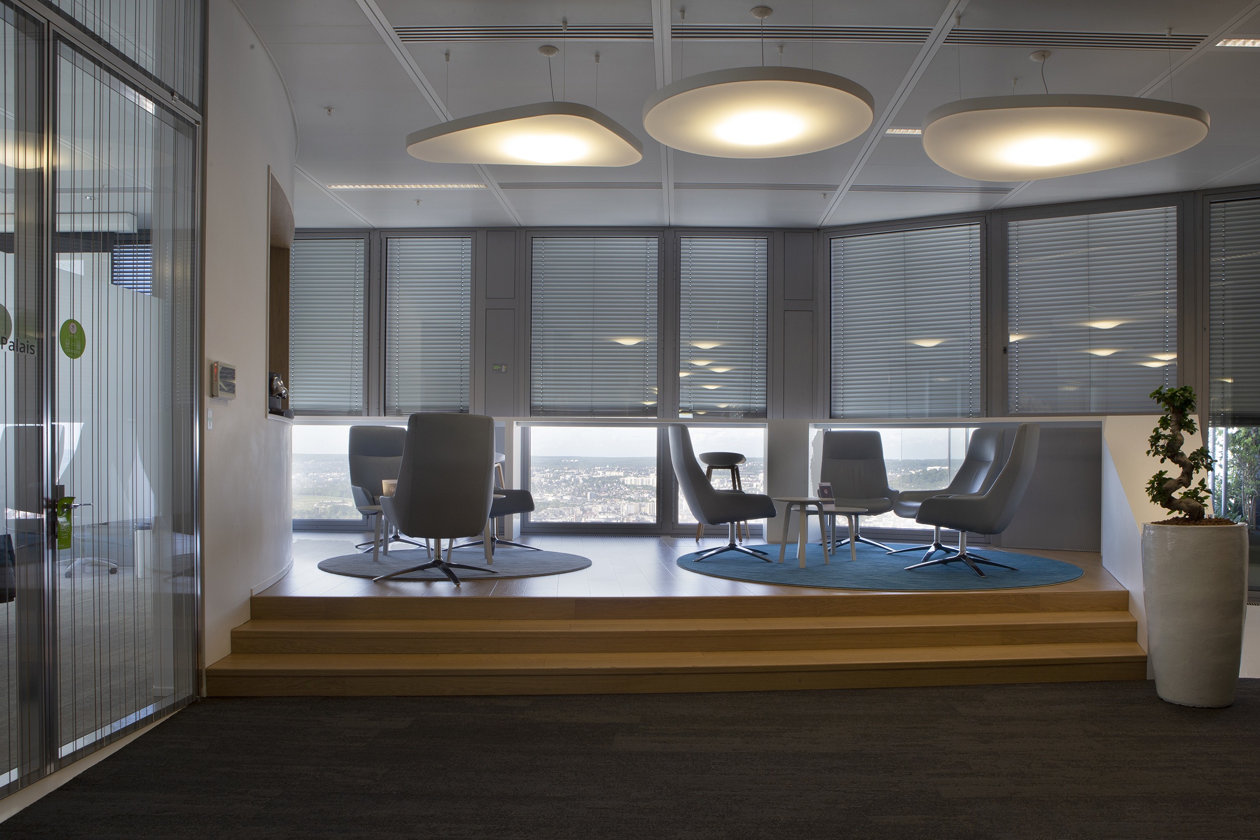 Our motorized Venetian blinds with C50 slats are integrated into this façade for complete control of light and shadow throughout the day. This efficient system reduces energy consumption for lighting and air conditioning.