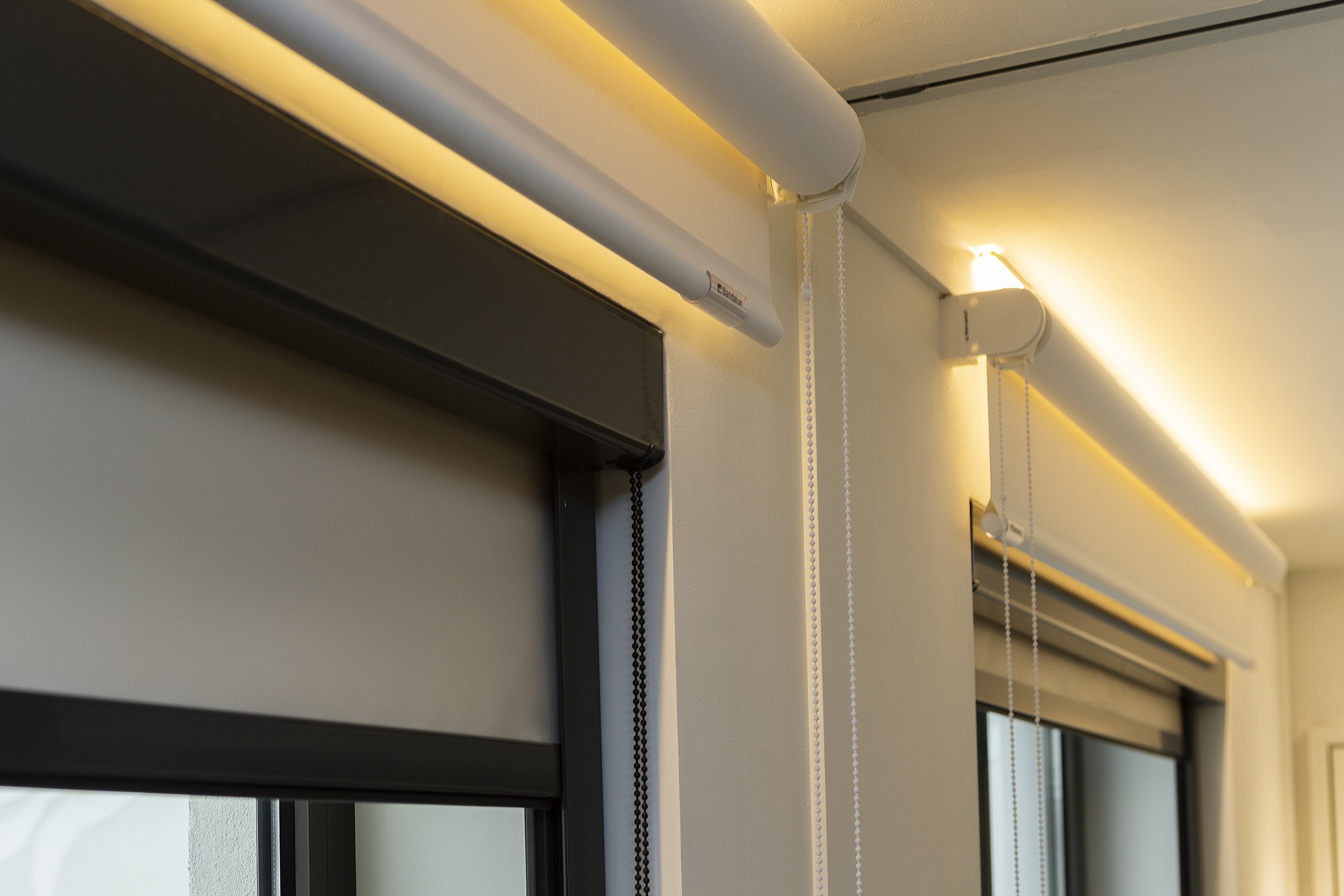 For the bedrooms, two system combinations are used: FIT BOX with Premium Plus or Zi-Box with Premium Plus—one for daily activity and visual connection with the exterior, and another for rest and total opacity. Fabrics are selected based on these needs. On the terrace, a Bandalux awning is also used, providing a comfortable outdoor space.