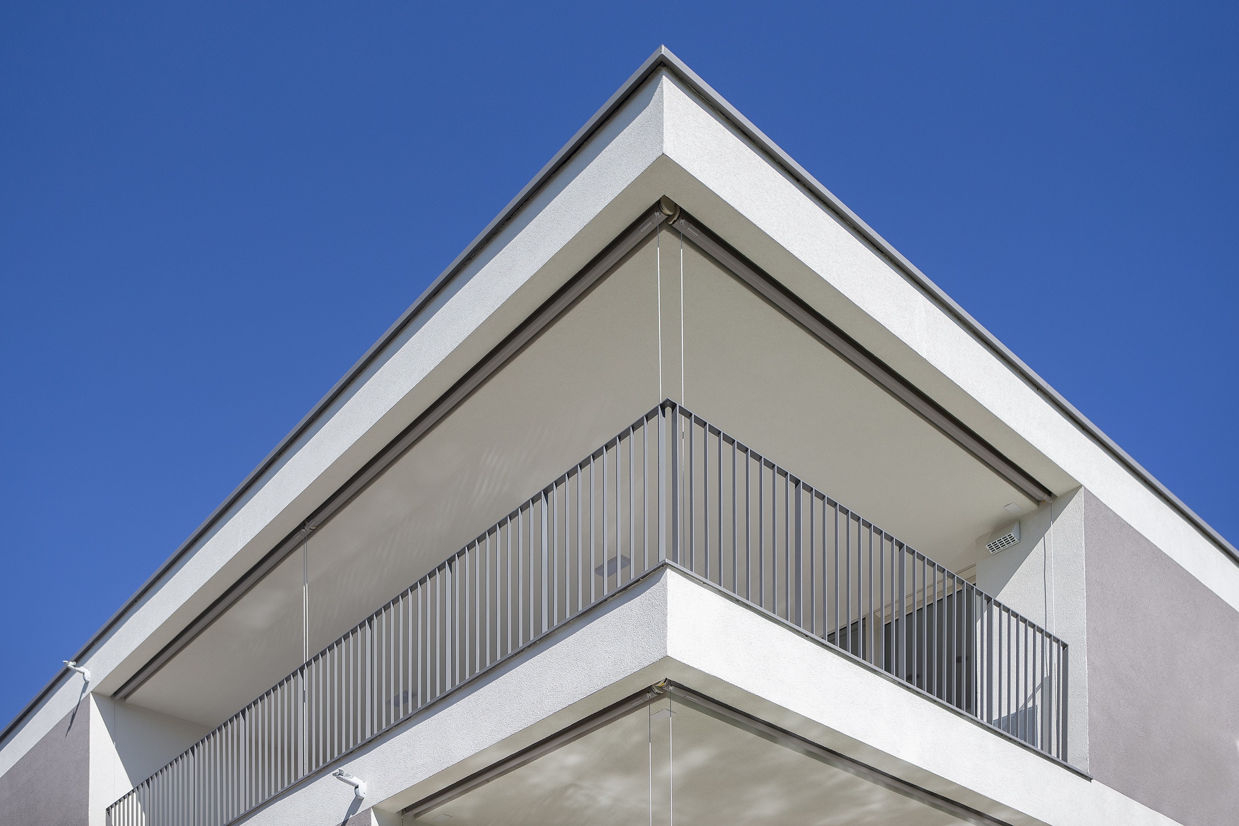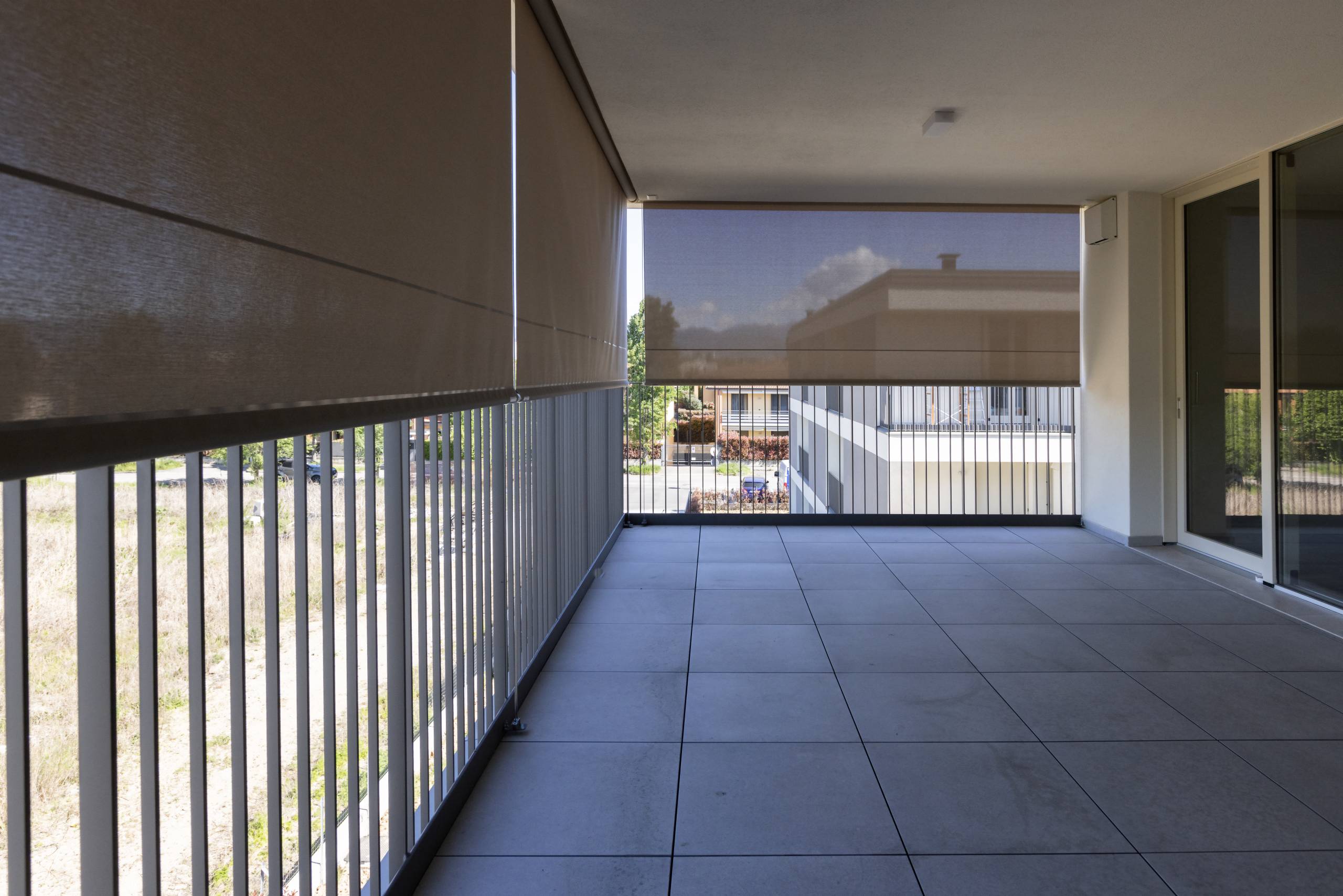 For the terraces, Bandalux provided an elegant solution with its Premium Plus roller shades. At the corners, two blinds are joined to ensure total privacy in the expansive terrace areas. The incorporation of cable guides ensures that the fabric stays in place even in windy conditions, offering both functional and aesthetic advantages.