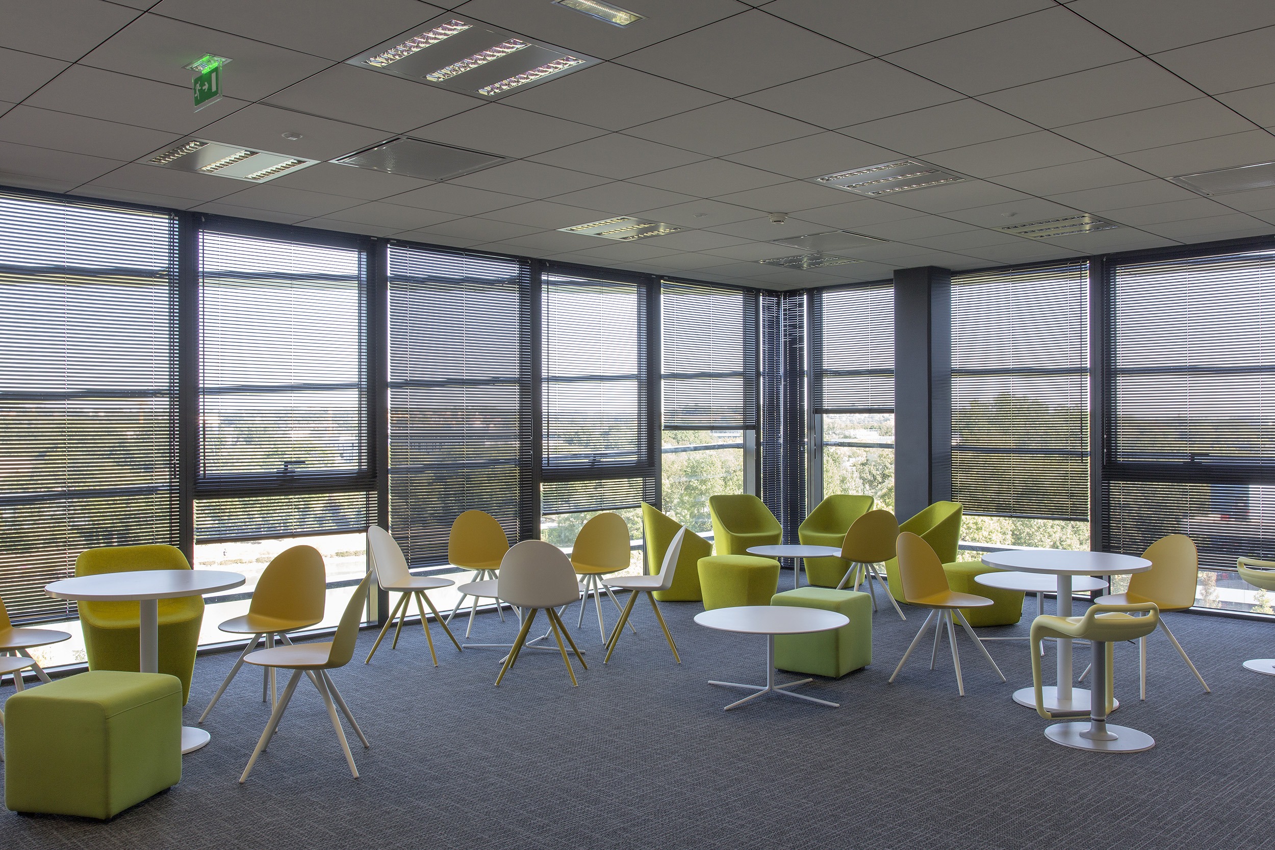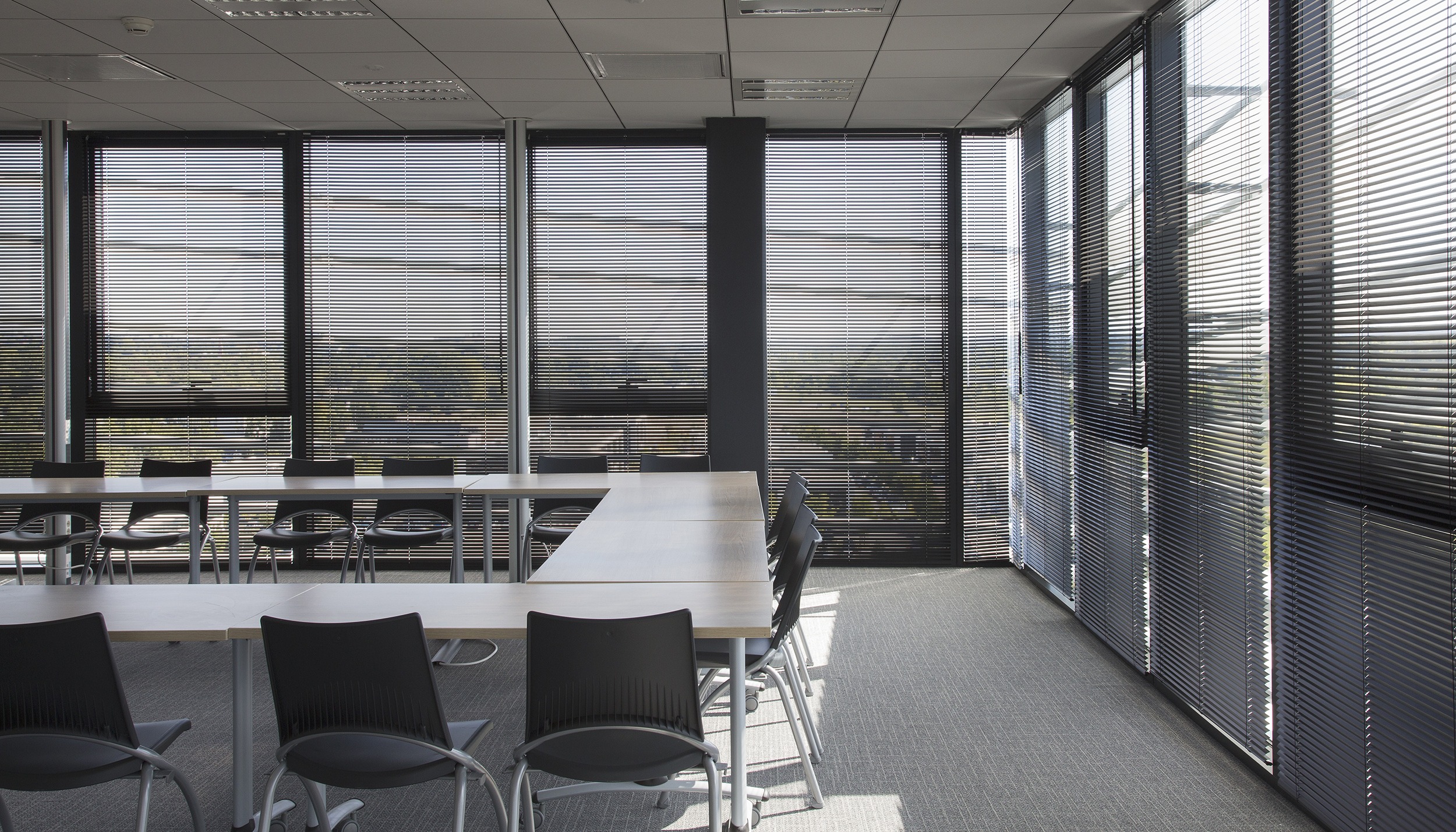 Special attention was given to employee comfort when selecting the interior blinds, which serve a dual purpose: respecting Thalès’ need for discretion and providing luminous comfort to complement the aluminum venetian slats on the building’s façade. Inside, over 938 Bandalux Signum aluminum venetian blinds cover the glazed surfaces, preserving privacy without sacrificing visibility, whether installed in meeting rooms, open offices, or private offices. This office building, with its aesthetic qualities, innovative equipment, design, and functionality, fully meets the criteria for thermal performance, environmental integration, and sustainability.