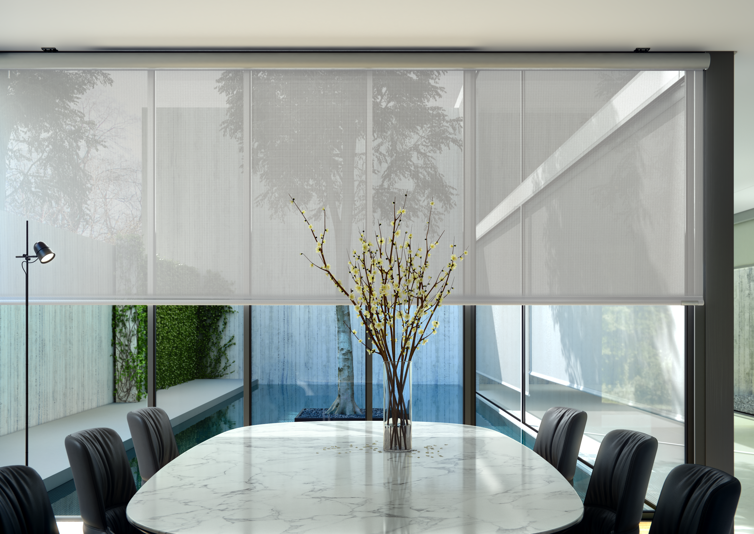 The O-Box is a roller shade with a cylindrical cassette and stainless steel components that withstand the most demanding outdoor conditions.
