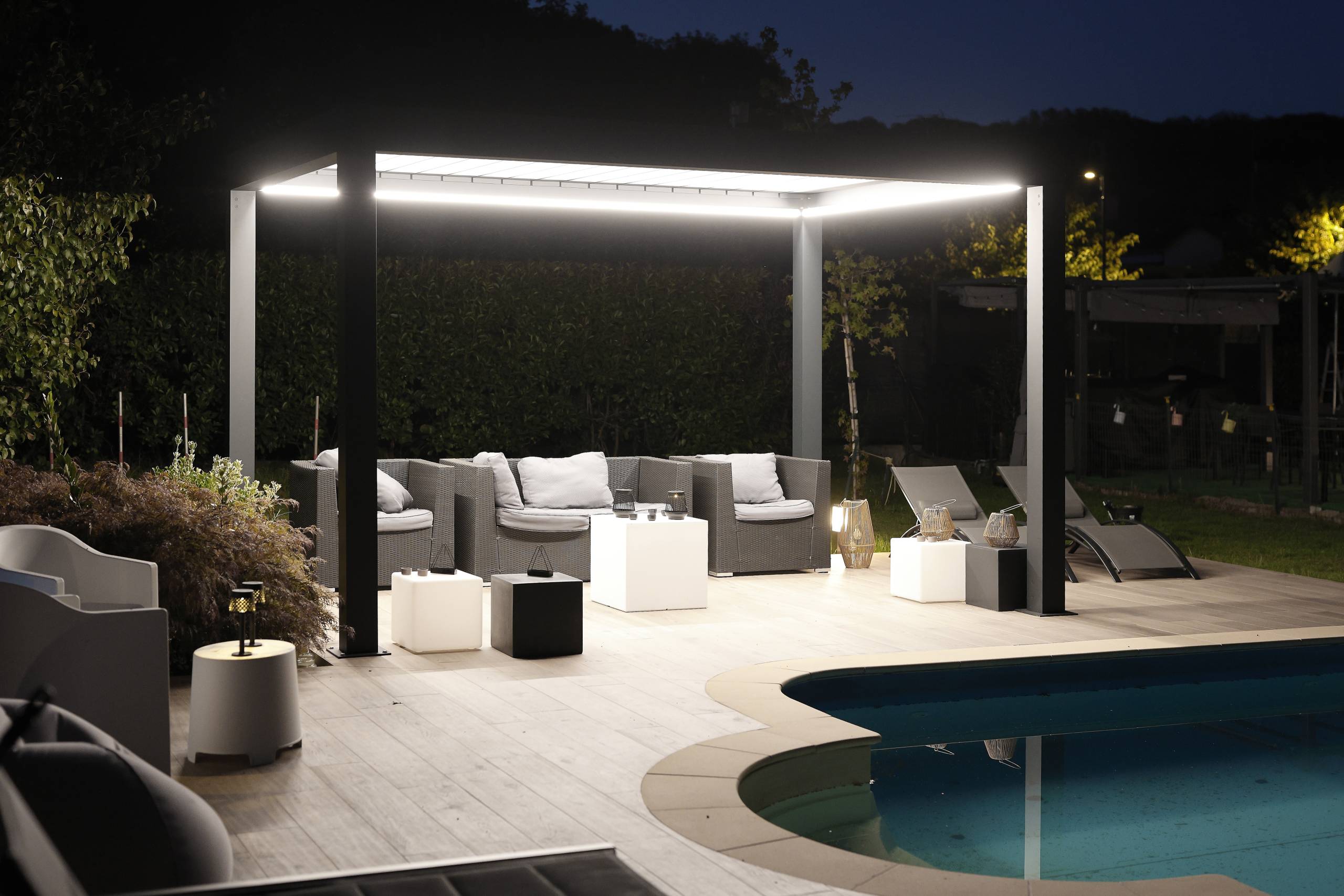 Le pergole Bandalux sono strutture robuste ed eleganti che permettono di godere degli spazi esterni tutto l’anno. Offrono protezione solare, resistenza alla pioggia e comfort termico. Realizzate con materiali durevoli e facili da mantenere, uniscono estetica, funzionalità e tecnologia per abitazioni e progetti Contract.