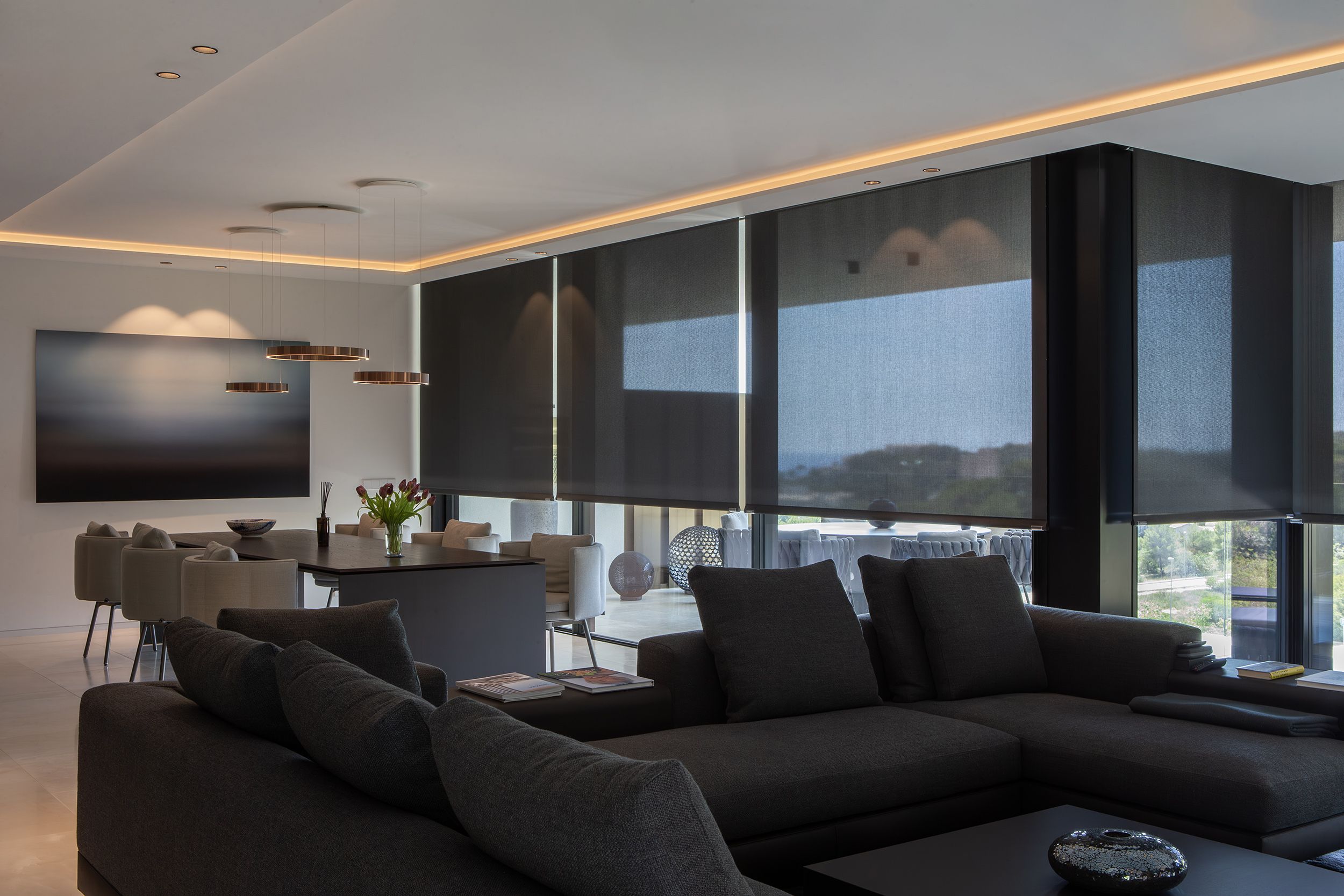 Three villas in Mallorca embrace style and comfort with Bandalux curtains and shades, creating a perfect connection between indoors and outdoors.